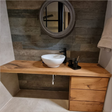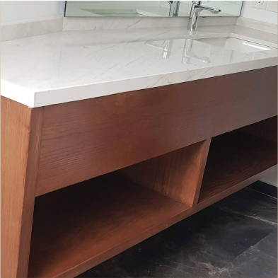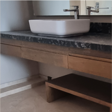 Nuestros muebles y recubrimientos están hechos a medida, utilizando maderas resistentes a la humedad y acabados de la más alta calidad.